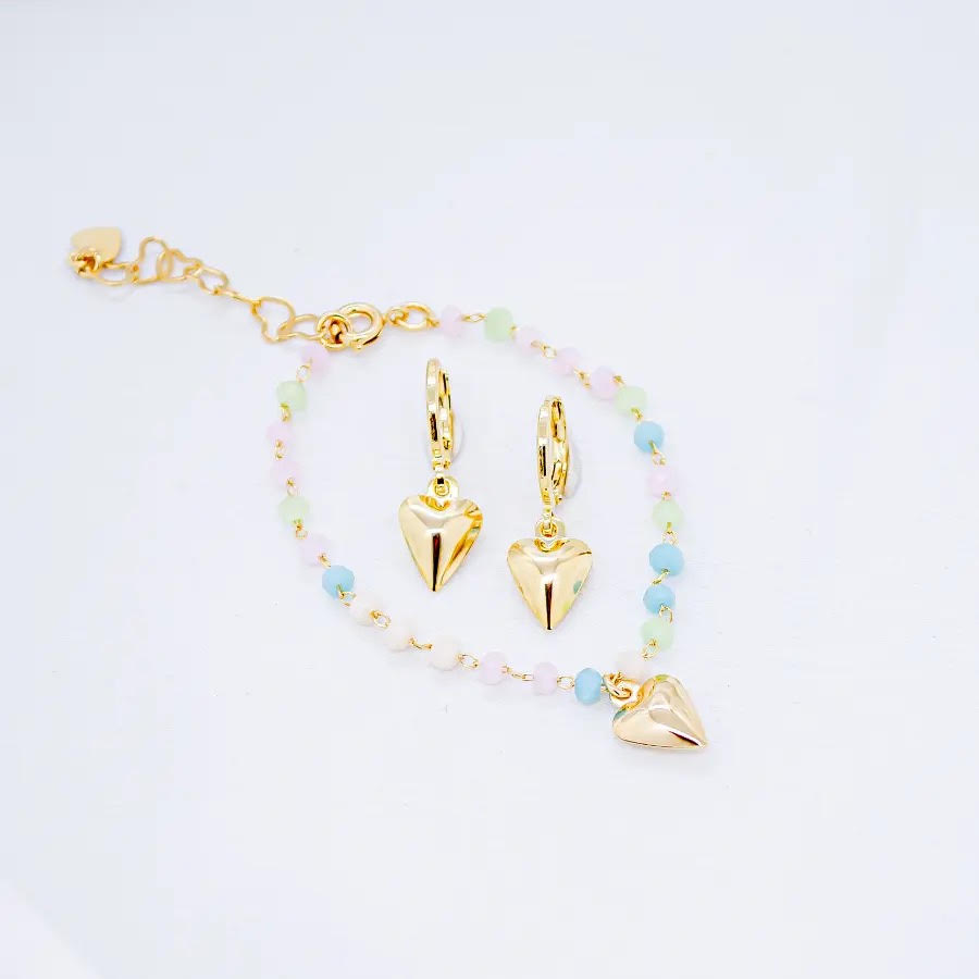 O Conjunto Corações Dourados é a escolha perfeita para demonstrar amor e cuidado. Feito com banho de ouro 18k e livre de níquel, une beleza, segurança e afeto em cada peça.